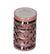 Warm, copper tones glow from 103's beveled glass votive design. Burn Time 25-30 hours.
