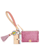 The new Around Town features whipstitched leather trim and an open interior. This crossbody comes with a detachable leather strap and adjustable woven crossbody strap, and can easily be converted into a clutch! Keep things organized with the interior zipper pocket and credit card pocket.