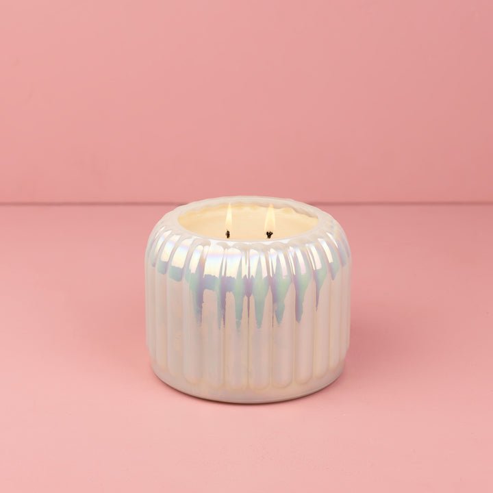 Make a statement with the luminous beauty of Sweet Grace Candle #071. Designed with a stunning ribbed surface and pearlized iridescent finish, this candle adds a touch of glam to any space. With two wicks and 37.3 oz of our exclusive soy-blend wax, it delivers an impressive burn time of up to 142 hours—filling your home with the beloved Sweet Grace fragrance, longer than ever.