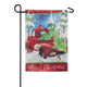 This garden size suede flag has two designs on the front and back! Both sides feature a Scandinavian patterned gnome holding a candy cane. 1) Holding a lantern behind a snow covered tree. 2) holding a ball ornament with a wreath behind him.
