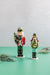 - Hand-painted ceramic nutcracker with light-up bottle brush tree