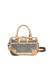 - Natural leather handles and multicolored, woven, adjustable crossbody strap