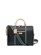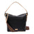 - Includes two detachable straps: a black leather studded shoulder strap and an adjustable woven crossbody strap