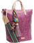 - Includes two detachable straps: a woven shoulder strap and an adjustable woven crossbody strap
