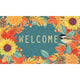 Part of our dimension doormats collection, this embossed floor mat features a wreath of Autumn flowers, feathers, and berries. It has a leaf imprint in blue side borders.