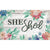 Add a personalized touch to your entryway with this She Shed Embossed Floor Mat. This floor mat reads "She Shed" in elegant black lettering against a weathered white wood background. Vibrant flowers around the edges add delightful detail to this rustic design that is perfect for gardening sheds and more. This embossed mat is made of outdoor safe polypropylene with a recycled rubber backing to make sure it stays safely in place on your porch. The ridges and grooves of the mat make it easy to trap dirt before it enters your house and the thick material absorbs moisture, making it extremely durable and weather resistant. Spot clean or hose down, then air dry. For a longer life span, use indoors or on a covered outdoor space like a front porch.