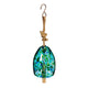 Part of the Art Glass collection, this glass bell chime has a light blue / white / blue speckle design. The clapper is wooden with a rope / hook for easy hanging. Measures: 5.5" diameter x 7.8"H