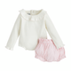 Bow Baby Bodysuit Set is a charming 2-piece ensemble perfect for your little one. The set includes a cotton rib long sleeve ruffle crawler, designed to provide comfort and style. The crawler features a delightful ruffle detail, adding a touch of elegance to your baby's outfit. Accompanying the crawler are poplin bow bloomers, crafted to complement the overall look with their adorable bow accent. This set is ideal for babies aged 3-6 months, ensuring a snug and comfortable fit. The crawler is made from a soft blend of 93% cotton and 7% spandex, offering flexibility and ease of movement, while the bloomers are made from 100% cotton, ensuring breathability and comfort for your baby. 6 Months
