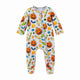 Our Baby Halloween Sleeper features both Halloween sweets and treats! The footed sleeper is made of cotton spandex. The gray pajamas feature a fun Halloween pattern with candy, bats and pumpkins throughout. The sleeper is footed and features a cross-body zipper on it.