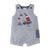 This Sailboat Pinafore set, the Jon Jon is perfect for your 4th of July vacation. The woven stripe jon jon features wood button shoulders and a striped pattern. The center of the jon jon features a sailboat applique and chambray side pocket. The jon jon even features a dog and firework details!