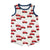 Our Red Car Baby Romper is perfect for your energetic little boy. The bamboo knit romper features wood button shoulder. The bodysuit features a white background with red car images throughout. The bodysuit features navy trim at the top. The bodysuit also has an interlock closure.