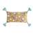This Happy Floral Tassel Pillow features the most beautiful springtime blooms. The dhurrie cotton pillow features French knot embroidery. The pillow features blue corner tassels. The pillow features bright pops of color - pinks, blues, yellows and green. The pillow reads "Happy".