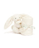 - A treat for tiny hands, Bashful Pink Bunny Ring Rattle can be grabbed by its soft paws, long lop ears or ring-shaped tummy. When given a gentle shake it will sound the rattle inside, much to baby’s delight! Crafted in a soft, pink coloured fur made from recycled fibres featuring a Bashful Bunny pink suedette nose and embroidery eyes.