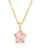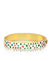 This beautiful bangle is plated with 18k gold and features hearts with hand-painted enamel. Hinged closure secures with button clasp.