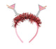 Add a touch of festive flair to any celebration with this Cheer Tinsel Headband. Crafted from soft felt, this headband is designed for comfort and style. The standout feature is its vibrant tinsel crown, which adds a sparkling touch to your look. Adorned with intricately cut glitter icons and cheerful sentiments, this headband is perfect for parties, holidays, or any occasion that calls for a little extra cheer. With an outer width of 1/2" and a topper height of approximately 2 1/2", it offers a secure fit while making a bold statement. Ideal for both adults and children, this headband is a must-have accessory for spreading joy and festive spirit.