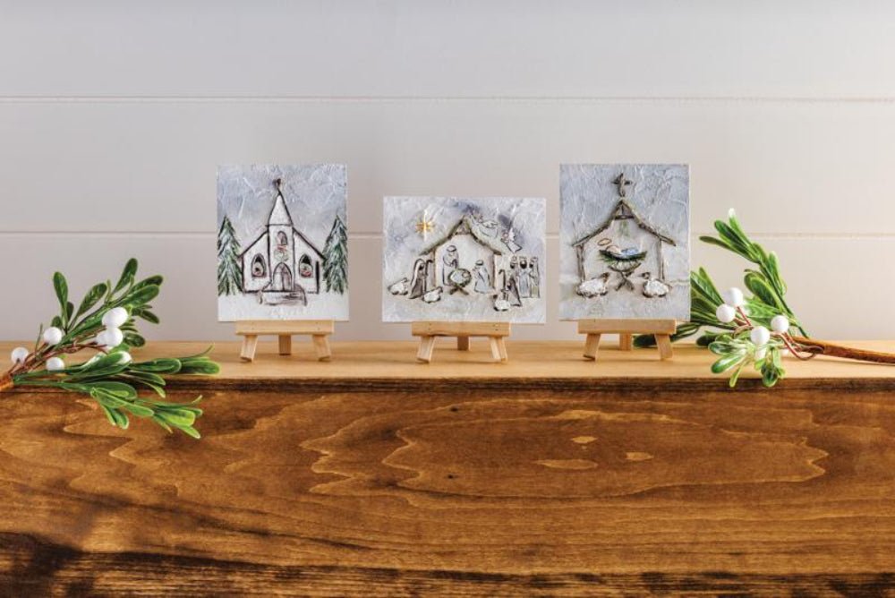 Manger Farmhouse Art is a charming canvas art print that captures the rustic elegance of farmhouse decor. This piece is beautifully crafted and comes with a sturdy wooden display easel, making it a perfect addition to any room. Measuring 5" x 4", it is compact yet impactful, ideal for adding a touch of warmth and character to your space. The high-quality canvas ensures vibrant colors and fine details, while the wooden easel provides a classic and stable display option. Perfect for gifting or enhancing your own home, this art piece embodies the simplicity and beauty of farmhouse style.