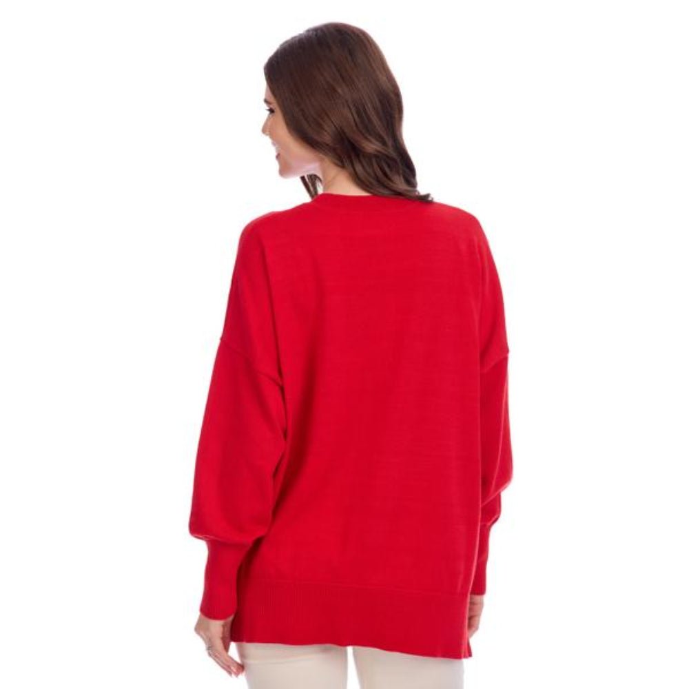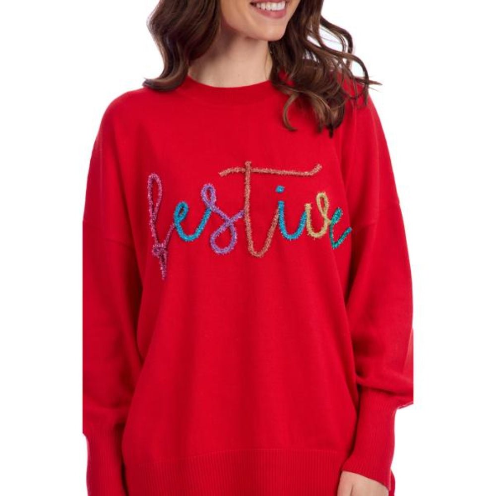 - Acrylic knit sweater with tinsel appliqué