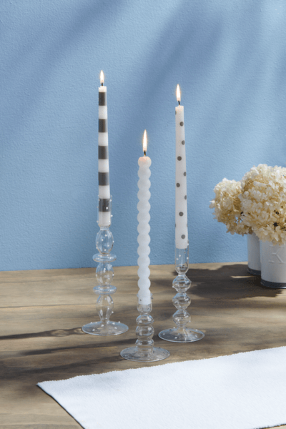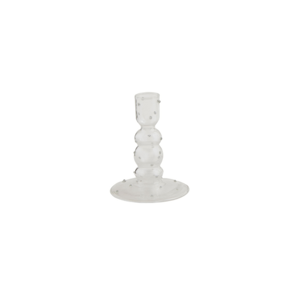 This exquisite blown glass fluted candlestick is a true testament to the artistry and craftsmanship of skilled glassmakers. Standing at a graceful 4 inches tall with a diameter of 3 1/2 inches, this elegant piece is designed to captivate and enhance any space it graces. The fluted design adds a touch of sophistication, creating a beautiful play of light and shadow that dances across its surface. Adorned with meticulously applied dimensional glass baubles, each candlestick is a unique work of art, offering a delightful texture and visual interest. Perfect for adding a touch of elegance to your dining table, mantel, or any special occasion, this candlestick is not just a functional item but a stunning decorative accent that will elevate your home décor. Whether used as a centerpiece or as part of a larger display, it promises to bring a sense of luxury and refinement to your surroundings.