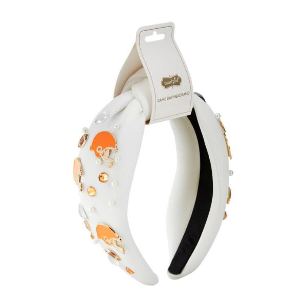 The Gameday Headband is a stylish and comfortable accessory that adds a touch of glam to any outfit. Made from soft cotton, this top knot headband features eye-catching rhinestone, pearl, and enamel icon details that make it perfect for game day or any special event. Whether you're cheering on your favorite team or attending a party, this headband is sure to turn heads and elevate your look. With its versatile design and high-quality materials, the Gameday Headband is a must-have accessory for any fashion-forward individual.