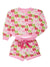 Cozy up in this cute ruffle pajama set. Featuring crew neck sweatshirt, with front chest pocket, ruffle hem detail, rib cuffs and neckline. Shorts feature elastic waist with velvet tie, slant pockets, and ruffle hem. Made of 48% modal 48% polyester 4% spandex. This blend results in a soft, breathable, and durable fabric that offers characteristics such as a smooth feel, resistance to pilling, and good drape