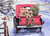 Irresistible greeting card has it all: Three adorable pups, a vintage pick-up truck, festively wrapped gifts, and the family Christmas tree.