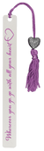 ''Wherever You Go, Go with All Your Heart'' is engraved in purple, along with a heart design, on this slim stainless steel bookmark.