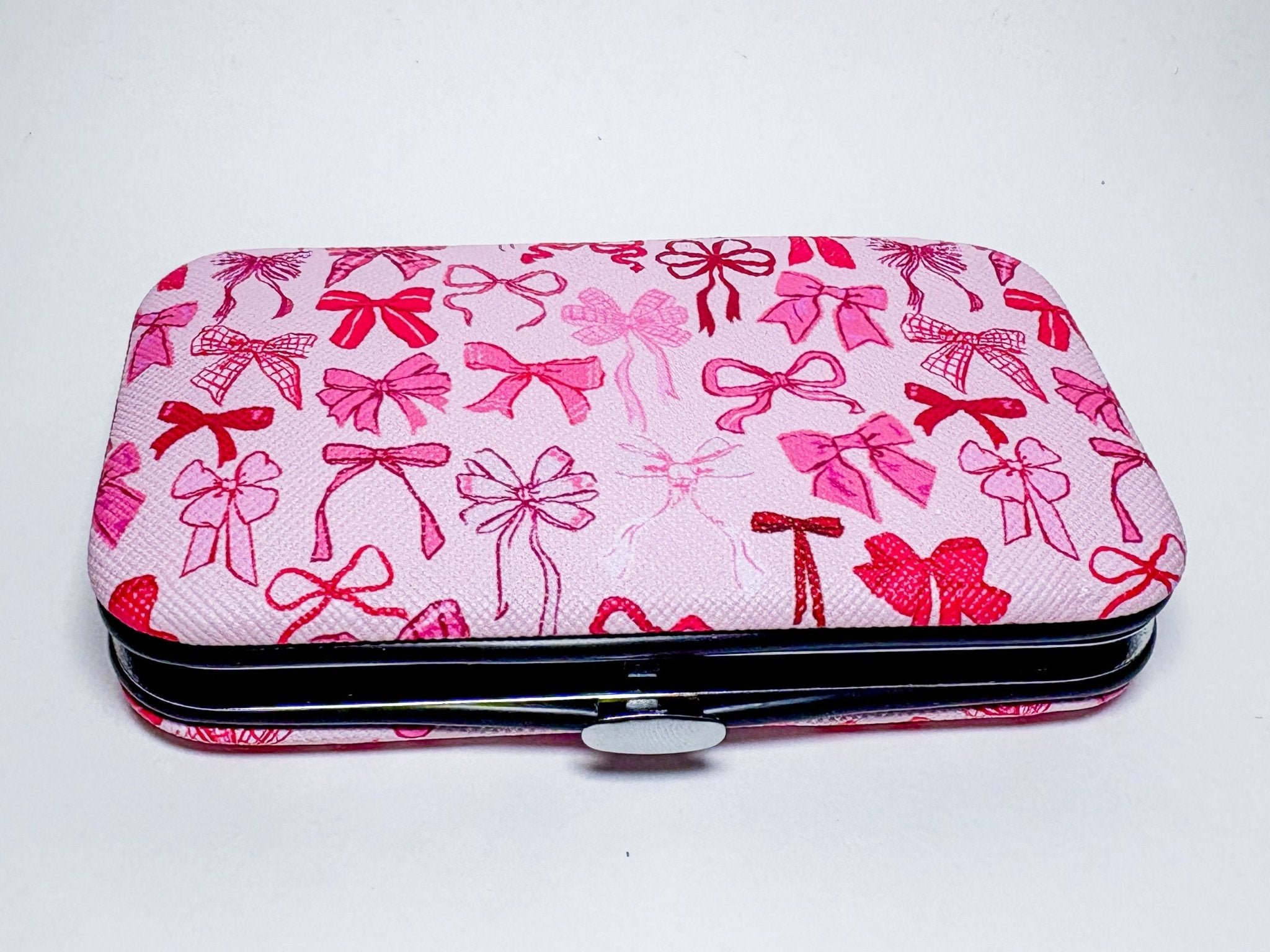Upgrade your nail care routine with this must-have manicure set! Which pattern is your favorite? Choose between Blue Bow, Pink Bow, Camo or Patchwork.