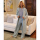 This cozy and stylish lounge duster from The Royal Standard is perfect for any casual occasion. With a comfortable hood and long sleeves, it is made for chilly days. The duster is knee-length, a soft blue color, and features a style that flatters any body type. The size is large and it is suitable for women's regular size. The duster has no noticeable flaws or defects, and it is ready to be worn and enjoyed. This is a must-have addition to any wardrobe for those who value both comfort and fashion.