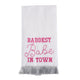 This dish towel is a handy addition to any kitchen and may be used to clean surfaces or dry dishes. The fringe details and sassy saying bring style and personality to the space.
