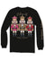 Celebrate the season in style with this playful black long sleeve shirt with the phrase 'Y'all are nuts' and a trio of nutcrackers. Simply Southern logo below, on left chest, and along right sleeve. Making every detail merry and bright. Crafted from 100% cotton, it’s cozy and soft for all your holiday adventures.